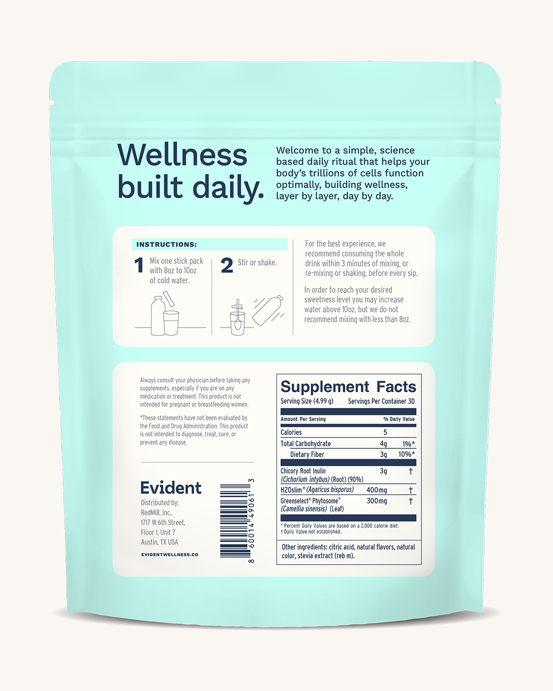 Our supplements are meant to be taken daily to see results. Simply tear open your single-serve pack, pour, and stir into 8oz of water!